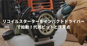 リコイルを引く体力がどうしても厳しいときの「代替始動」に関しては、危険性も含めて注意点をまとめた記事もあります(あくまで緊急時の考え方として)。